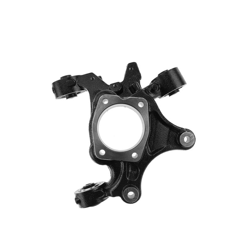 Material: La mangueta está fabricada en metal, normalmente acero, para garantizar su resistencia y durabilidad. Esto es habitual en las manguetas de dirección, que deben soportar el peso del vehículo y resistir las fuerzas de la dirección y la frenada.