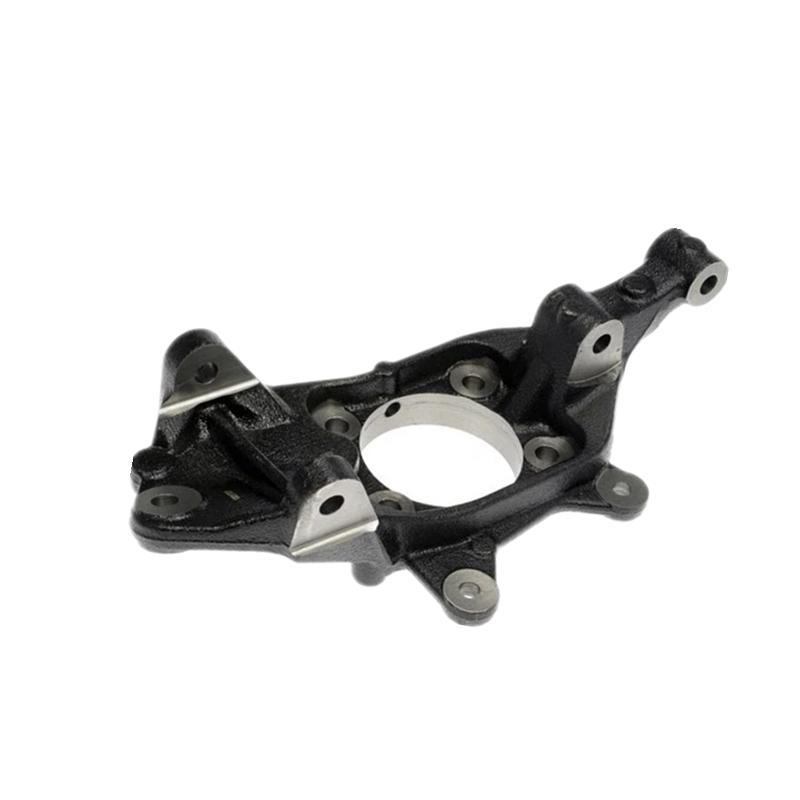 Material: La mangueta está hecha de metal, normalmente acero, para garantizar resistencia y durabilidad. Esto es estándar para los ejes de dirección, que deben soportar el peso del vehículo y resistir las fuerzas de la dirección y el frenado.