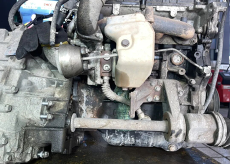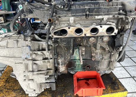 Como se muestra en la figura a continuación, este es el motor desmontado y conjunto de caja de cambios El motor tiene una cilindrada de 1,5 litros con turbocompresor y la caja de cambios es de tipo CVT.