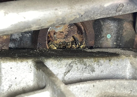 Después de quitar el turbocompresor y el colector de escape, se puede ver la situación específica de la fuga de agua.