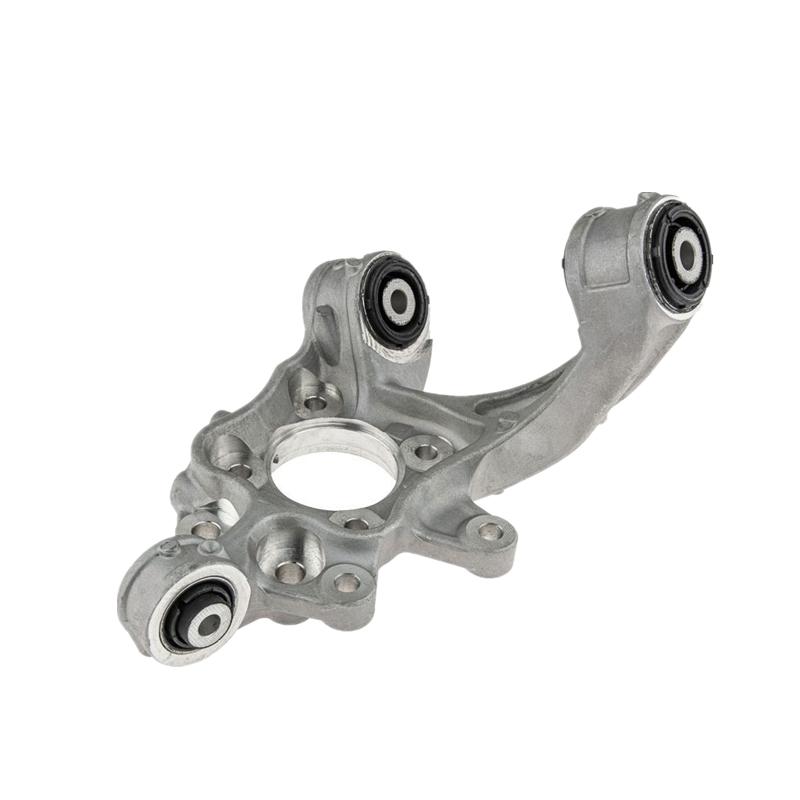 [Función]: La mangueta de dirección transmite el movimiento de la dirección a la rueda delantera, permitiendo al conductor controlar la trayectoria del vehículo. Además, ayuda a mantener las ruedas delanteras alineadas y en la posición correcta, lo cual es fundamental para un desgaste uniforme de los neumáticos y una conducción más segura.