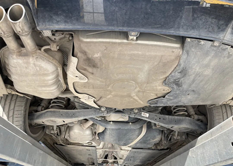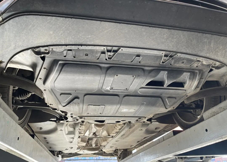 Levante el coche para observar el chasis, como se muestra en la siguiente imagen. Hay una gran placa protectora de plástico en la parte inferior del motor y la caja de cambios, y dos orificios en la posición de la caja de cambios. El técnico dijo que sirven para refrigerar la caja de cambios.