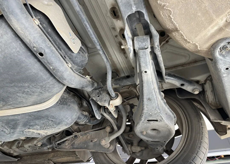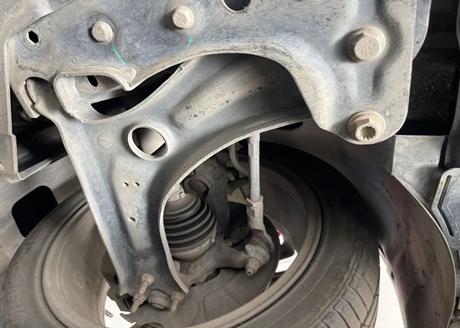La parte delantera es una suspensión independiente MacPherson. El brazo de soporte inferior está fabricado con chapa de acero estampada de una sola capa, con un diseño perforado en el centro. La mangueta de dirección es de hierro fundido con una capa de óxido superficial que no afecta la seguridad. La rótula de la barra de dirección, la rótula del brazo de soporte inferior, la biela pequeña, el amortiguador y otros componentes fueron inspeccionados y se encontraron en buen estado.