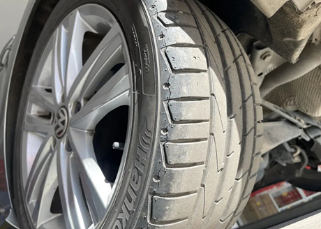 Al revisar los neumáticos, el capitán observó que el estado de los dos neumáticos traseros era muy deficiente, como se muestra en la imagen a continuación. Presentaban grietas grandes y evidentes en los bordes, y el capitán comentó que este tipo de neumáticos presentaba importantes riesgos para la seguridad.