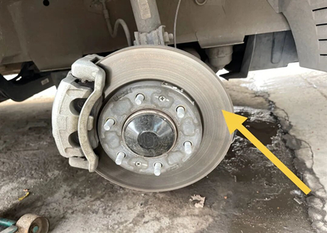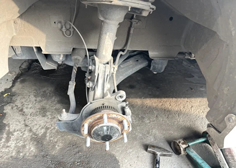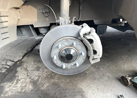 Tras la aceptación del dueño del coche, el maestro comenzó a desmontarlo. Como se muestra en la imagen de abajo, se han quitado las ruedas y se ha completado el... disco de freno Se puede ver. El maestro dijo que aunque la superficie parece plana, en realidad ya no lo es.