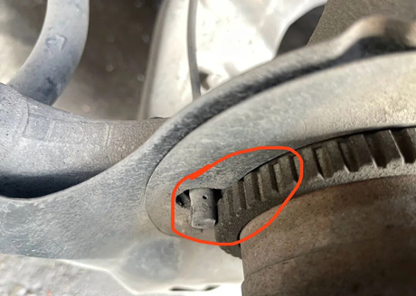 Puedes ver la señal cubo de rueda y sensor de velocidad de la rueda dentro del cojinete